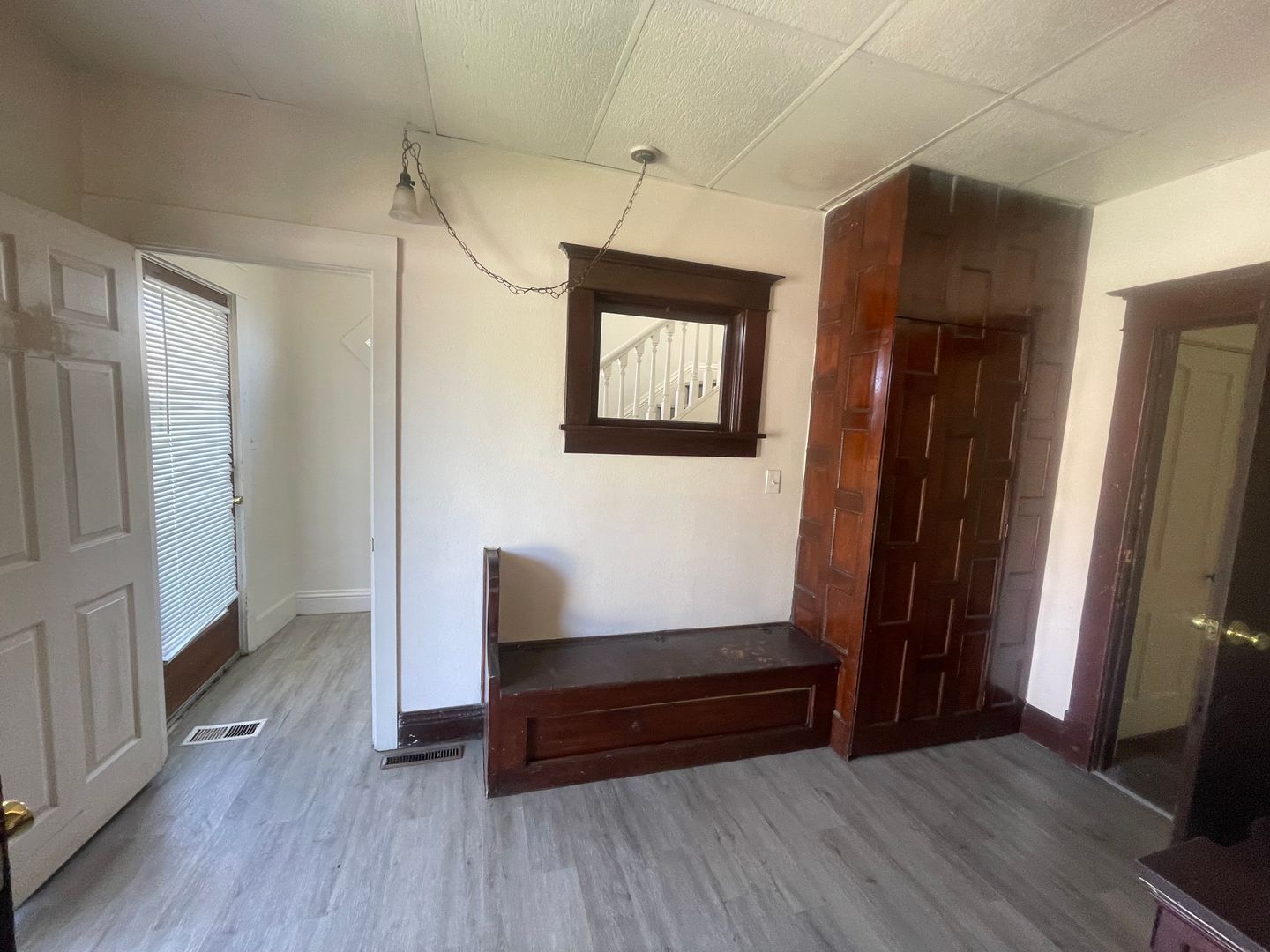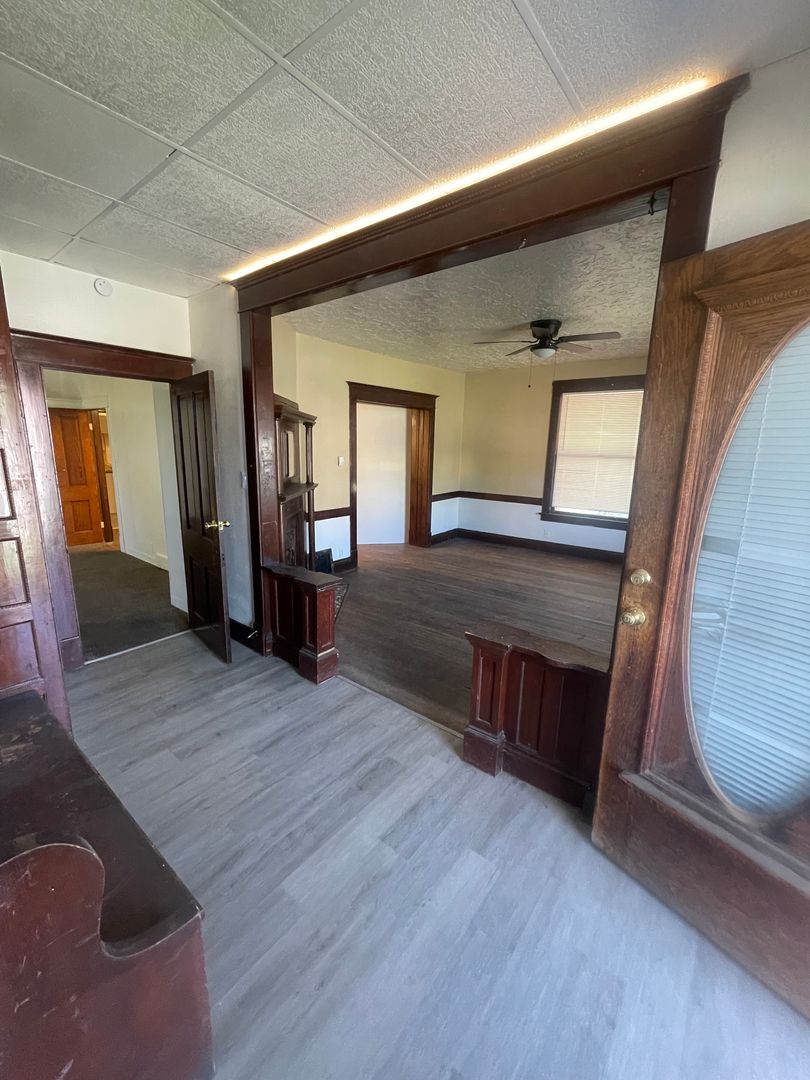 This house is actually two separate units, 2 bedrooms on the main level and a 3 bedrooms up in another unit. A very elegant living room on the main level with two bathrooms make up this incredible unit. This unit is unit number one and it has 2 huge bedrooms, large living room, two bathrooms, custom cherry woodwork, laundry room, fireplace, large wrap around porch, built in cherry armoire. Lots of off street parking. Hurry this one usually goes very fast!