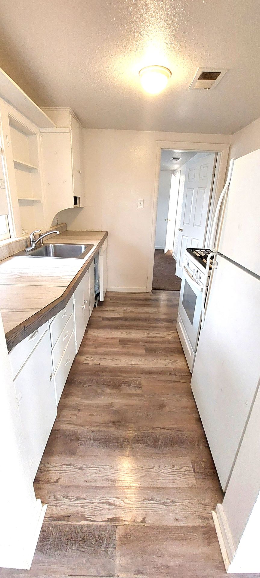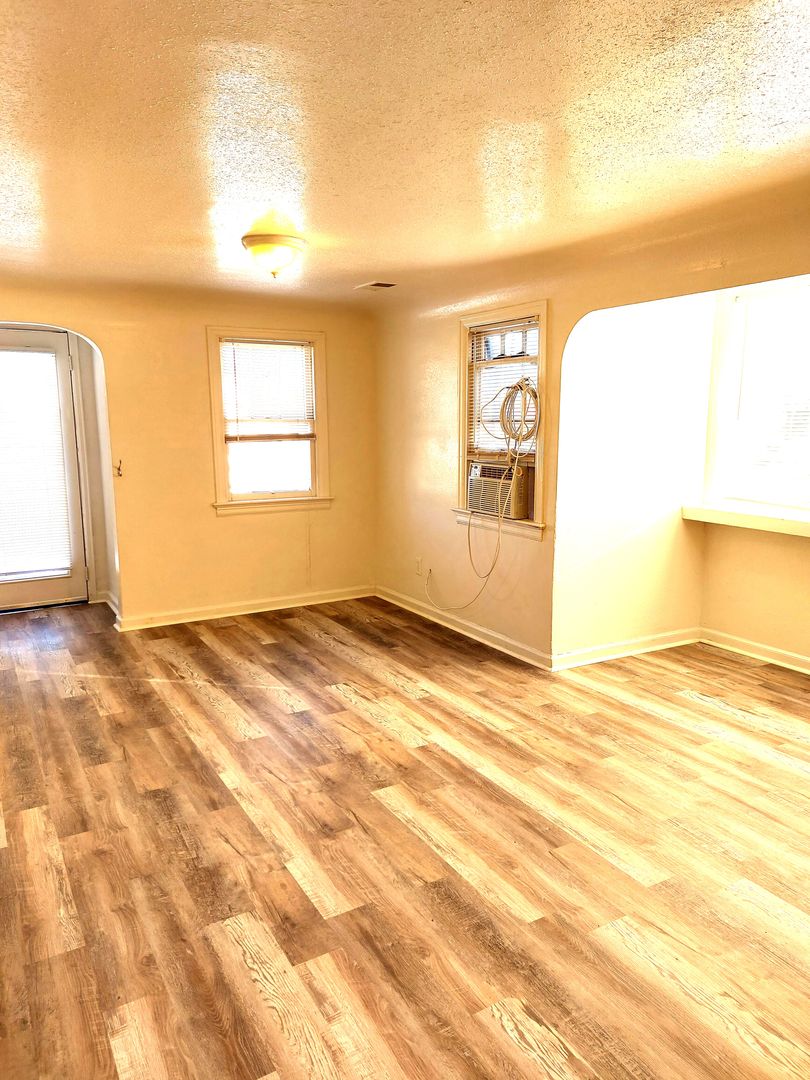Ranch style house with 3 bedrooms on main level with a single full bathroom. This home has a large living room with tons of natural lighting. Two of the bedrooms are on the smaller size but the master is large. The master bedroom has two separate closets. All of the finishes were redone in 2024 so it has a fresh new paint and weathered wood style plank flooring.